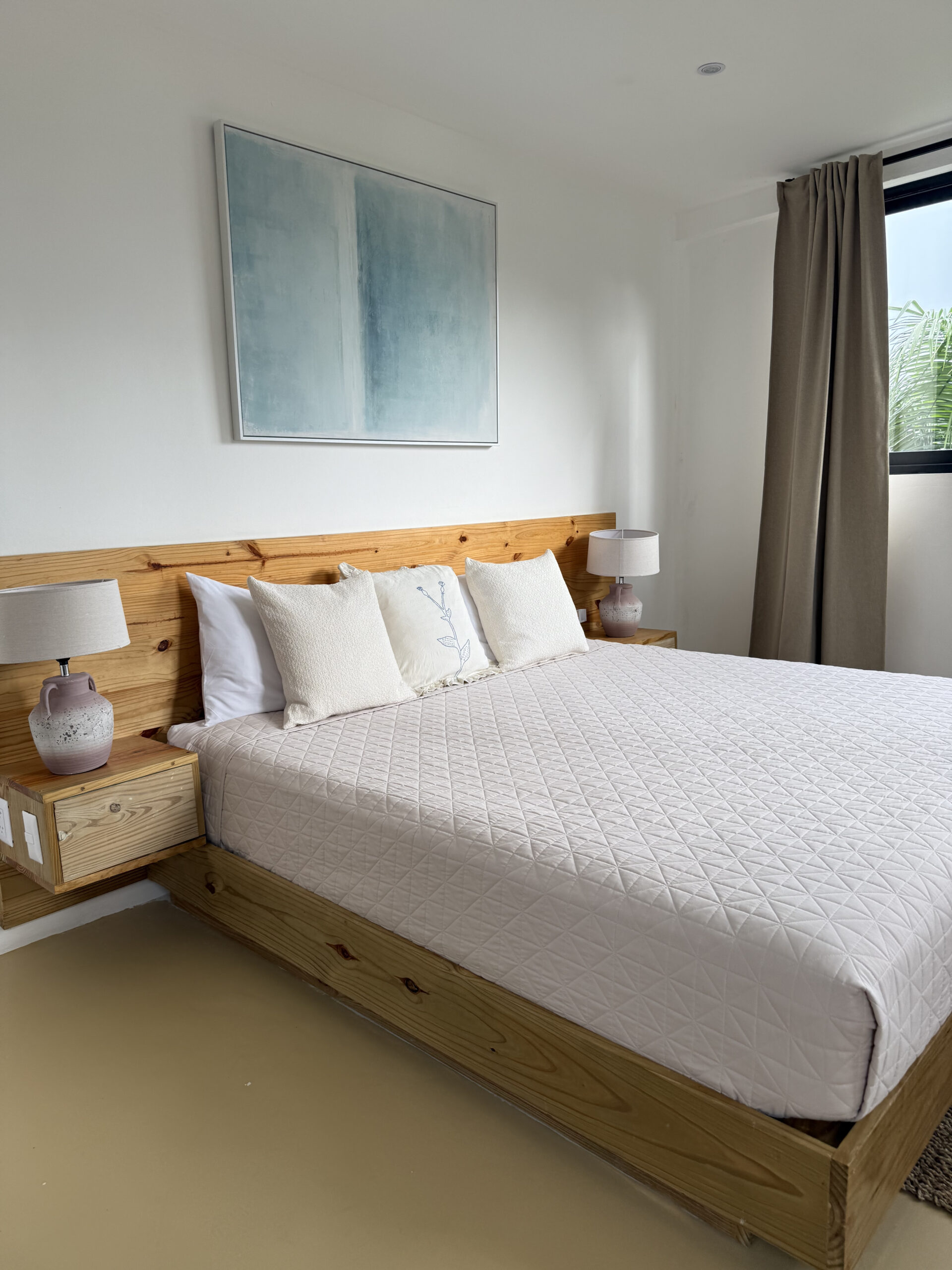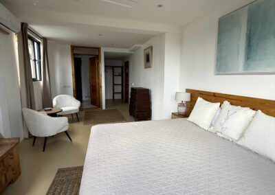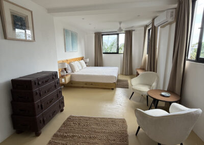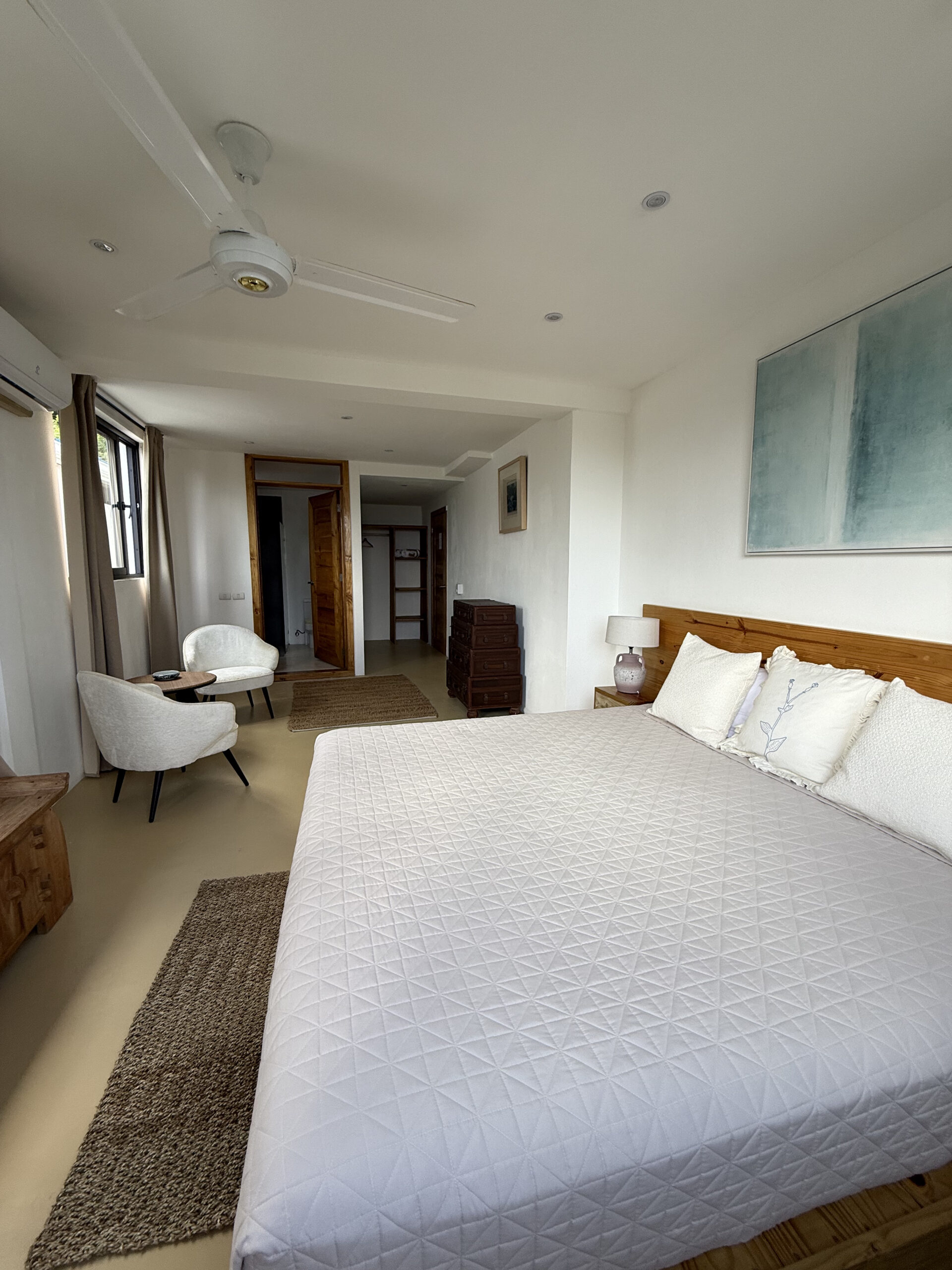 This room includes air conditioning, a king-size bed, a storage area and a modern private bathroom.
